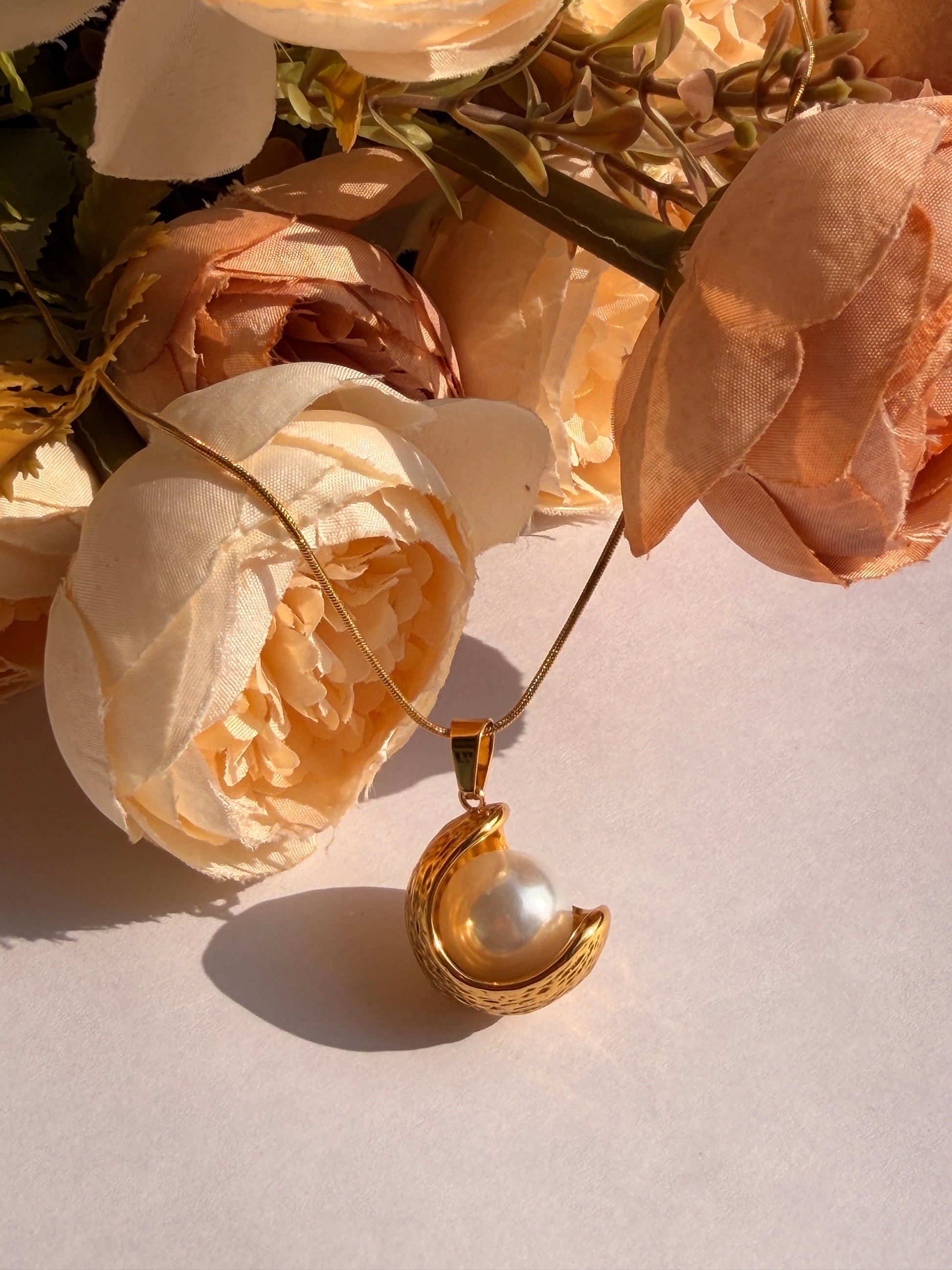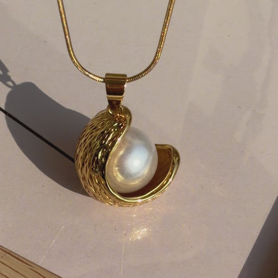 Golden Shell Pearl Necklace – Elegant Pearl Pendant in Gold Finish